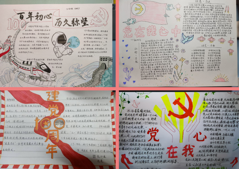 此次手抄报比赛的举办,激发了同学们爱国爱党的高切热情,明确了我们要坚决拥护党的领导,坚持党的教育方针,为社会主义奋斗终身的理想信念。一代代共产党人在时代的激流中奋进,在复兴进程中铸就了崇高的信仰,作为新一代的接班人,我们要拥护党、爱护党、追随党,肩负初心使命,为实现中华民族伟大复兴贡献出自己的力量。